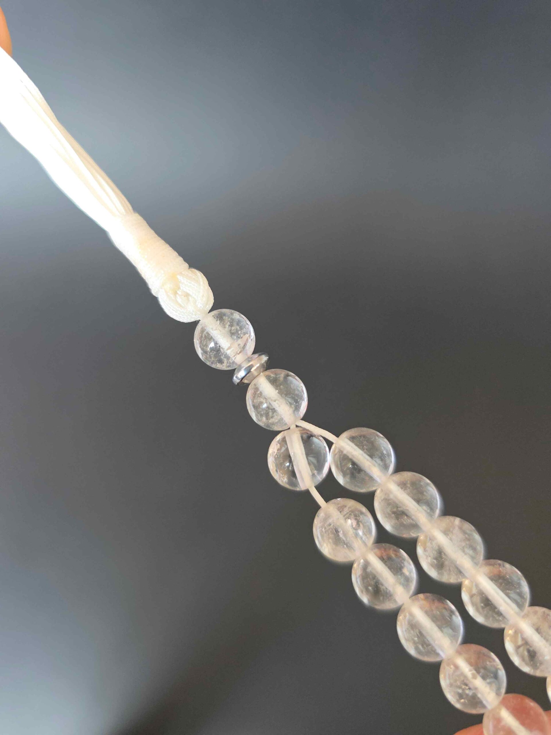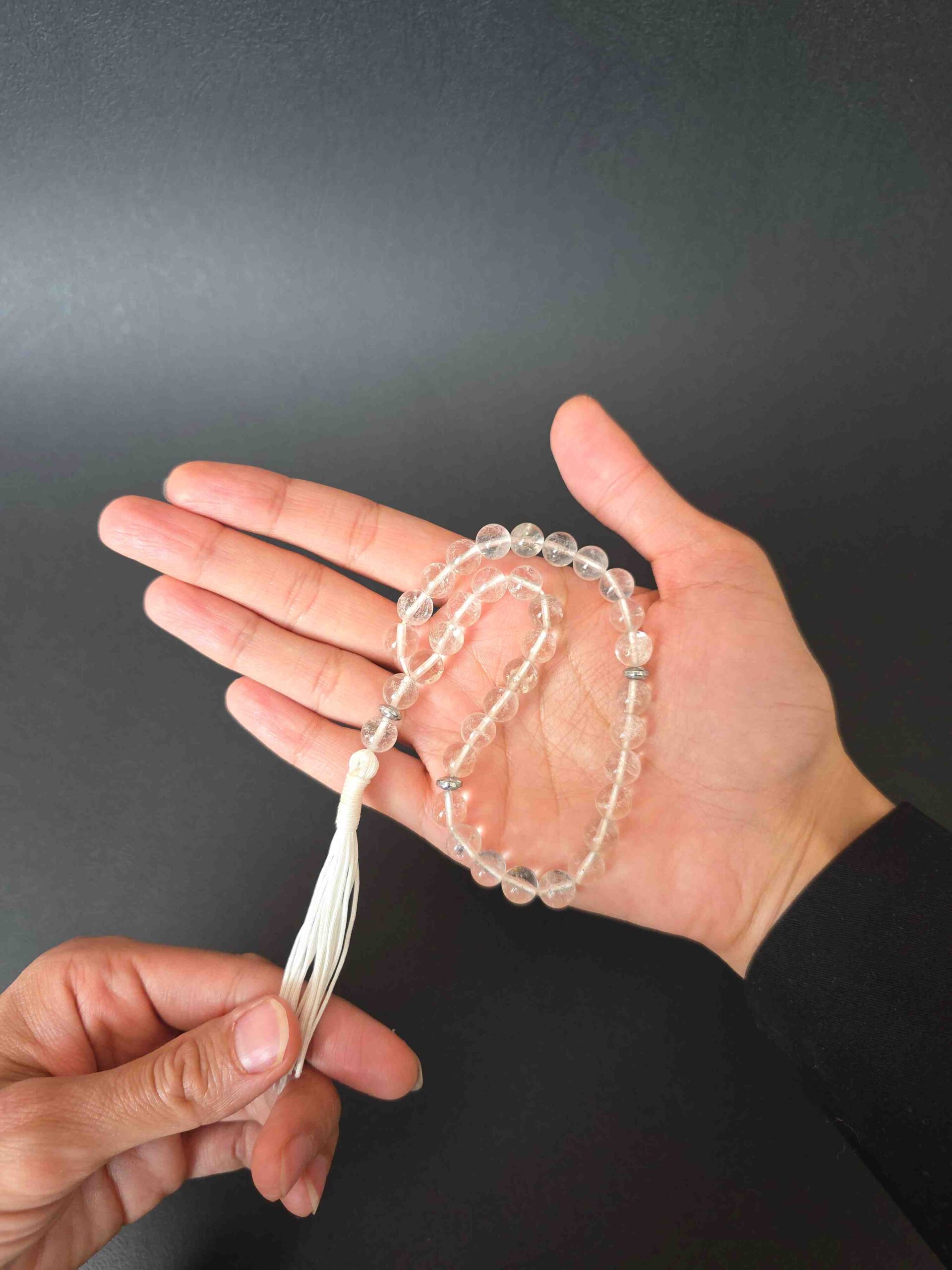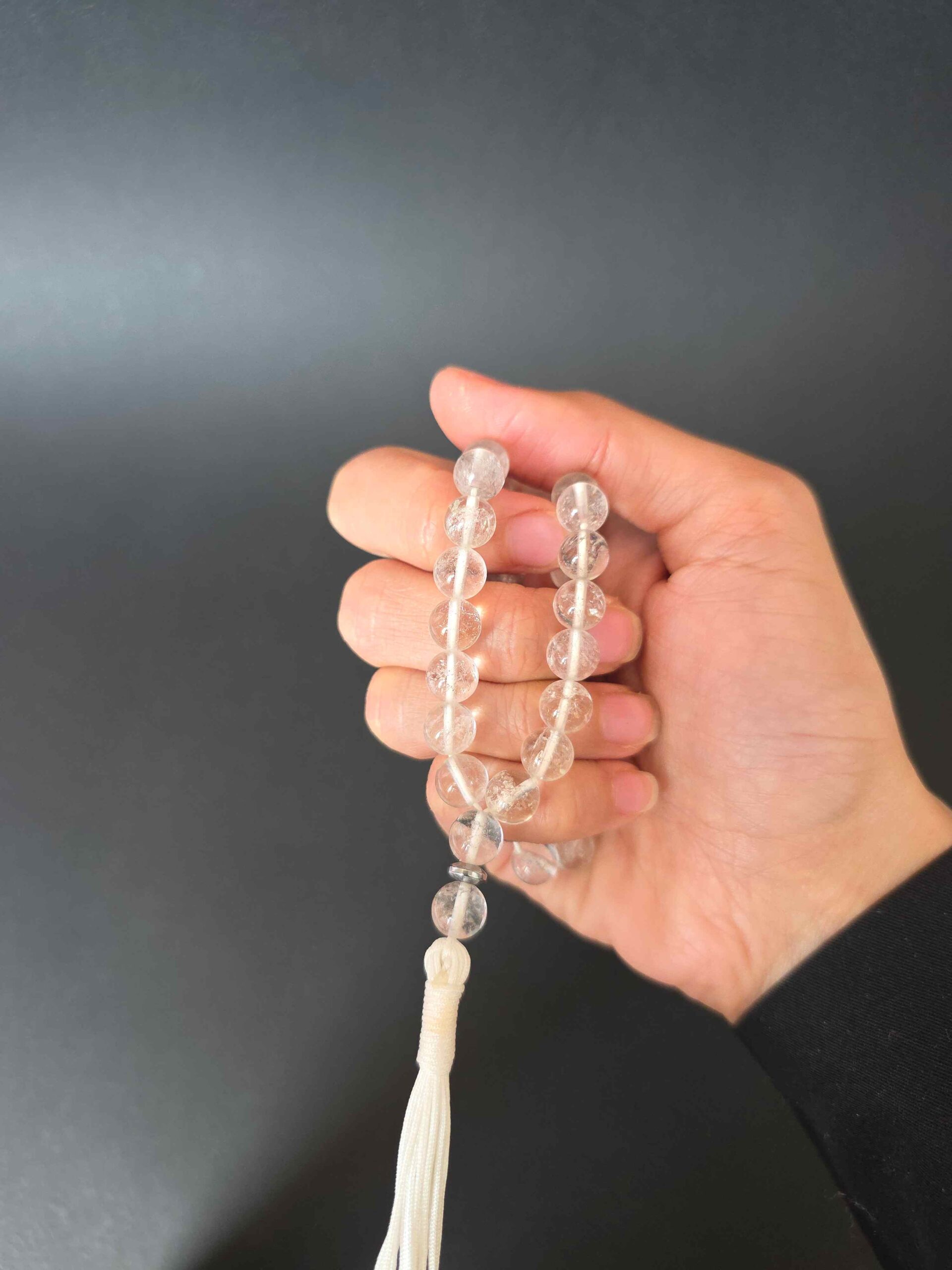 تسبیح کریستال کوارتز ساخته شده از سنگهای سایز ۸ میل می باشد .
